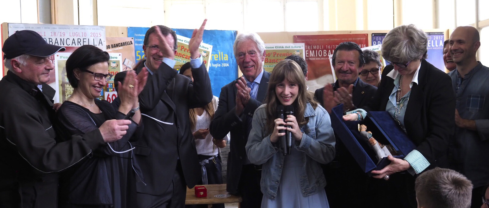 Ragazza tra i ragazzi. È davvero minima la differenza anagrafica tra la fresca vincitrice del 60° Premio Bancarellino – Bianca Chiabrando (classe 1999 e ancora studentessa a pieno titolo, visto che frequenta l’ultimo anno del liceo classico) – e gli oltre 1.300 studenti delle Scuole medie di tutta Italia che le hanno assegnato, sabato 21 maggio, la statuetta del San Giovanni di Dio, simbolo della vittoria del Premio, consegnata alla giovane scrittrice da Carla Galdino, rappresentante del Ministero dell’Istruzione. E l’emozione di Chiara è emersa tutta quando ha ringraziato i ragazzi presenti, che con 631 preferenze sui 1.315 voti complessivi hanno determinato la vittoria del suo libro – “A noi due prof” (Mondadori) – del premio nato dalle costole del Bancarella maggiore nel 1958. Momento della consegna che, per il maltempo, non si è potuto svolgere all’aperto, nell’abituale cornice di piazza della Repubblica, bensì al primo piano del palazzo dell’ex Tribunale. Ma se è finita con la pioggia, per fortuna la giornata del Bancarellino era iniziata con il sole (fin troppo caldo all’inizio), con gli oltre 1.700 ragazzi presenti in piazza che, a partire dalle 10, si sono confrontati con gli autori sul mondo della lettura e della scrittura. Un’edizione del premio condotta, ormai come d’abitudine, da Daniele Sozzi, che ha guidato nel dibattito i ragazzi, i veri protagonisti della manifestazione. Alle 12 gli studenti, secondo il metodo di votazione in atto dal 2012, si sono alternati alle urne allestite nella piazza, trasformandola in un gigantesco seggio a cielo aperto, per decidere il vincitore della preziosa fascetta. Prima di passare alla fase di voto i cinque autori finalisti si sono dovuti difendere dal “fuoco” di domande giunte dai lettori in erba, che hanno dimostrato di aver letto e compreso a fondo il messaggio proveniente dai libri. In questo contesto, la Chiabrando ha ricordato la genesi del suo romanzo, che racconta di Olivia, giovane alunna al primo anno di liceo che si trova di fronte un professore spietato – Piero Pattume – che le rende la vita impossibile. Un romanzo ironico e simpatico, che sdrammatizza o forse rende più autentiche situazioni quotidiane di “vita di classe”, come ha evidenziato l’autrice nel chiedere il voto ai tanti giurati presenti in piazza: “A ognuno di voi è capitato quello che è capitato a me e che racconto nel libro. Quindi vi chiedo di far vincere i personaggi del mio libro”.