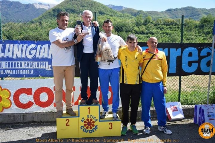 La quarta riedizione dei “Sette Campanili” di domenica 30 aprile gara podistica tradizionale degli anni settanta e ottanta che si svolgeva a Bagnone con partenze dalla frazione di Treschietto è stata accolta ancora in modo fantastico dai podisti tanto da aumentare ancora il numero dei partecipanti rispetto agli anni scorsi. Il percorso che rispecchiava quello tradizionale e ormai collaudato ,con partenza da Bagnone per le frazioni e ritorno in Bagnone attraverso i “Sette Campanili”: Bagnone, Mochignano, Treschietto, Vico, Corlaga, Agnetta ,Orturano, per 12.7 Km totali. Una gara con un’ascesa iniziale piuttosto impegnativa sino al borgo di Treschietto, poi falsopiano, ancora salita e disceso sino a fondovalle poi lievi strappi e galoppata finale in discesa sino al traguardo. Una gara che ha esaltato le qualità degli scalatori ma anche dei discesisti dando vita a duelli esaltanti. Vincitore assoluto Stefano Ricci ’”Atletica Vinci” 44’16” davanti a Emanuel Marrangone “Circolo Minerva Parma” 45’53” e a Gabriele Benedetti “Pro Avis Castelnuovo M.” 46’06”. In campo Femminile prima Isabella Morlini “’Ateltica Reggio” 50’24” davanti all’Arcigna Cibei Margherita “Golfo dei Poeti” 50’34” e terza Daniela Ferraboschi “Atletica Casone Noceto Parma ”51’52” . Premiazione speciale per il decano del corrilunigiana Angelo Doria classe 1929 con tripudio di applausi dei partecipanti.