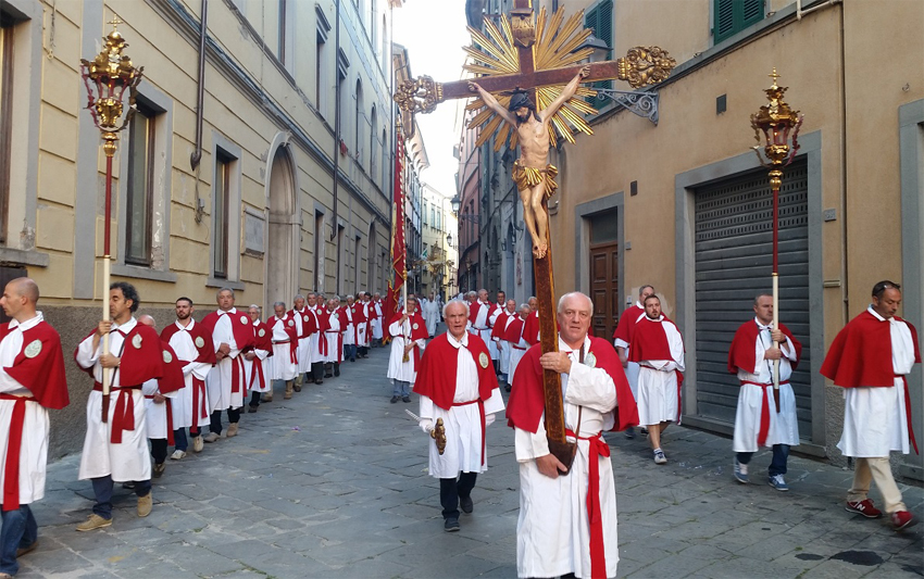 Rispettando il cerimoniale, la sindaca è poi salita nel presbiterio per consegnare al celebrante il cero che esprime la fedeltà al voto dei padri. Al termine della celebrazione, prima della benedizione finale, mons. Binini ha espresso il suo ringraziamento alla Corale S. Cecilia per aver reso più bello e partecipato il pontificale con i canti in onore della Madonna. Duomo e piazza antistante gremiti di fedeli nel tardo pomeriggio per la processione lungo il tradizionale percorso attraverso le vie del centro storico. Al termine del canto dei Vespri presieduti dal vescovo diocesano mons. Giovanni Santucci, accolta dalle confraternite e dalla Musica cittadina, la reliquia ha iniziato il suo “viaggio” accompagnata da un gran numero di fedeli. Al termine, nella concattedrale, il Vescovo ha voluto esprimere il suo compiacimento per una partecipazione così imponente alle celebrazioni: una conferma della fedeltà a Maria che la comunità di Pontremoli ha custodito intatta attraverso i secoli e custodisce tuttora. Ha quindi invitato i fedeli presenti a mettere in pratica nella vita due espressioni che i vangeli riferiscono alla Madonna: “Ecco la serva del Signore: avvenga per me secondo la tua parola”; “Qualsiasi cosa vi dica, fatela”.