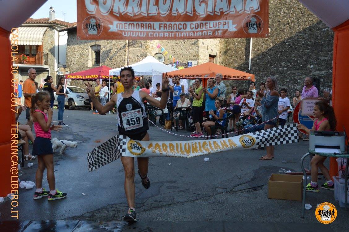 Doppio appuntamento nel giro di pochi giorni per il Corrilunigiana. Prima si è disputata, giovedì 27 luglio, a Fivizzano la quarta edizione della “Stranotturna del vino” e pochi giorni dopo, domenica 30 luglio, si è corso il16° “Trofeo San Pellegrino” a Casola. Partiamo con ordine dalla gara di Fivizzano che vedeva al via circa 180 atleti, e 50 piccoli runners. Gara in notturna di circa 2 km da ripetere 4 volte per un totale di 8 km su ondulato, con partenza da piazza Medicea, centro storico del paese. L’atleta pontremolese Raffaele Poletti “Atletica Lunezia”, (alla prima gara su strada quest’anno dopo tutte le fatiche e vittorie in pista), prendeva sin dall’avvio un discreto vantaggio che riusciva ad incrementare ad ogni giro chiudendo in un ottimo 27’42. Alle spalle lo scatenato Ria Roberto di Livorno a 2′ che teneva dietro un ottimo Riccardo Quilico 29’44” della “Pro Avis”. Nelle “lady”, testa a testa tra la carrarese Sara Tognini “Uisp Marina di Carrara” e la bergamasca Roberta Locatelli “Runners Bergamo”. Nei primi tre giri l’atleta di casa provava a staccare la lombarda che resisteva agli attacchi della Tognini. Nell’ultimo giro la bergamasca andava in progressione riuscendo a precedere di pochi secondi (34’58”) la Tognini (35’20”) sul traguardo. Terza Milena Santunione (“38’31”) della “Pol. Madonnetta”. Come detto neppure il tempo di tergersi il sudore e i corridori si sono trovati a Casola per disputare il “16° Trofeo San Pellegrino”, 23esima prova del Corrilunigiana 2017. Protagonista assoluto il caldo asfissiante che non ha dato tregua ai partecipanti andando ad incidere pesantemente sulla prestazioni dei singoli. Percorso che prevedeva una dura ascesa di circa 400 metri e poi una discesa che riportava i concorrenti ai piedi del paese con risalita lungo il borgo e passaggio di ben 4 volte dal via per un totale di 7,400 Km . Un superlativo Gabriele Benedetti 31’20” “Pro Avis” ha rifilato ben 1’52” ad un affaticato Ioannis Magkriotelis “La Galla Pontedera” che la sera precedente aveva partecipato alla gara di Massa “Attraverso le mura”. Invece sul terzo gradino del podio è salito il lunigianese Saverio Crocetti 34’02” “Pro Avis”. Senza rivali in campo femminile Elena Bertolotti 40’46” “Gas Runners” che precede Carmela Ferrari 46’11” “Gs Orecchiella” e Chiara Santini 49’13” “Atl. Favaro”. Prossimi appuntamenti con il Corrilunigiana: domenica 6 agosto, alle 9, a Fossone per la “14a Strafossone”, sabato 12 agosto a Montereggio, alle 18 si avrà la “2a Corri il cammino della Maestà”; domenica 20 agosto, alle 9,30, a Isola Santa di Careggine (LU) si terrà il “14° Trofeo Careggine”, il programma di agosto si chiuderà domenica 27 a Castelnuovo Magra, alle 9, con la “3a Corri Castelnuovo”. La gara in programma sabato 5 agosto a Filattiera è stata annullata. Per info e news: www.corrilunigiana.it