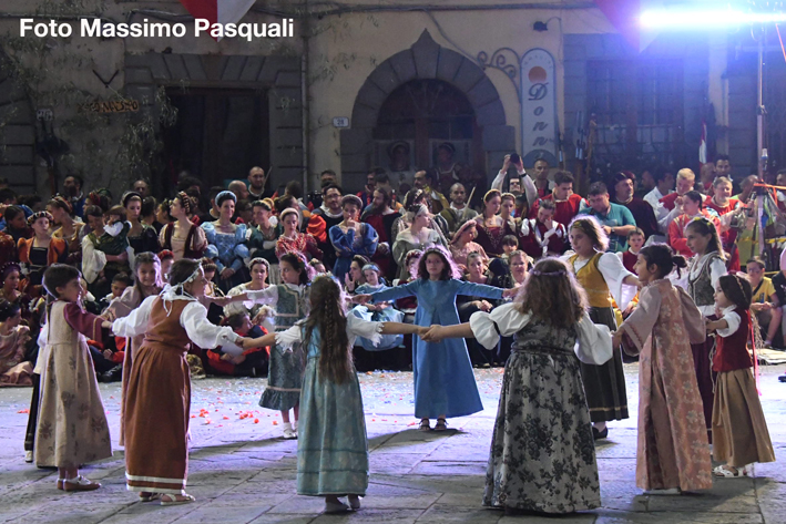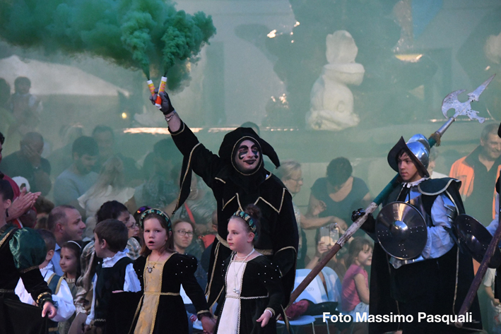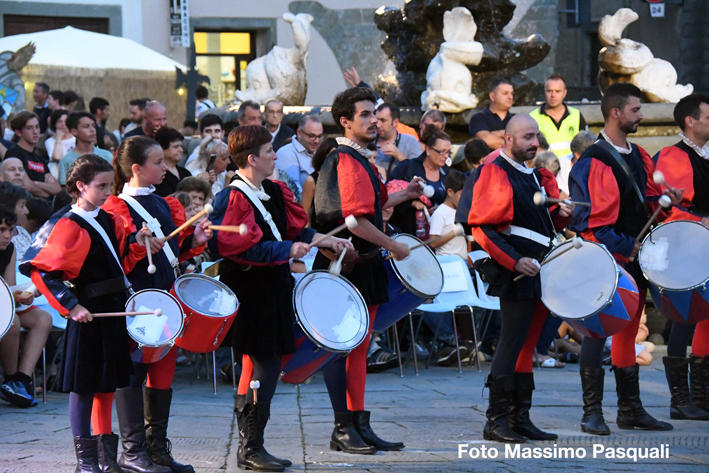 08072018/Fivizzano Disfida arcieri 2018 vince MontechiaroQualcuno comincia a definirlo la “Juventus della Disfida”, anche se, per aggiudicarsi questa edizione – la quarta consecutiva – l’armo di Montechiaro ha sofferto più del previsto e sono stati i 3 perfetti tiri finali di Daniele Bellotti a decretare il sorpasso su Verrucola, fino a quel momento in leggero vantaggio, mantenuto fin dall’inizio. Lo “scampato pericolo” ha scatenato ancor di più la festa degli abitanti di Spicciano, Terenzano, Mazzola, Turlago, in una piazza Medicea affollatissima da oltre mille persone – provenienti anche dalle province vicine – che hanno assistito ad una gara avvincente, in un’atmosfera d’altri tempi. Al terzo posto, dopo Verrucola, si è piazzato il capoluogo Terra, quindi Guardia e Fittadisio. La squadra del quartiere dei vincitori era composta da Daniele Bellotti, Stefano Varanini, Fabrizio Furletti, Jacopo Benelli, Ottaviano Fumanti che alla fine hanno potuto sollevare il drappo che quest’anno è opera dell’artista Beatrice Donin. Verrucola si è consolata con il premio individuale: la palma del miglior arciere è stata infatti assegnata ad Emiliano Bianchi. La sfida è stata preceduta dalla tradizionale e ricca sfilata con ben 400 figuranti in costumi che hanno suscitato lo stupore e l’ammirazione del pubblico che ha gremito la piazza fino a tarda sera.