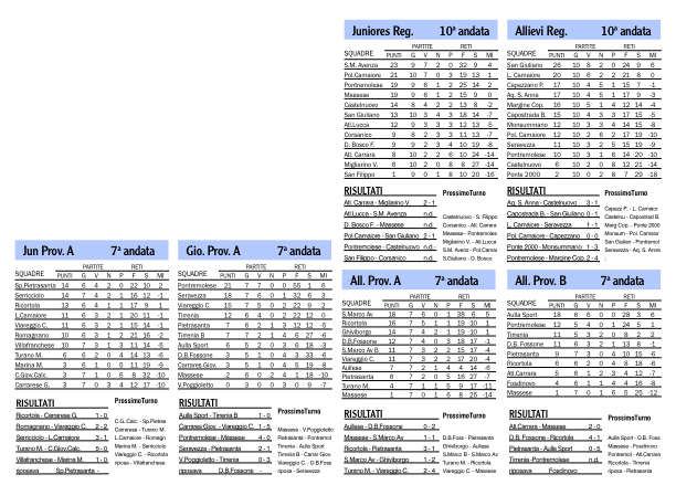 Alla sconfitta della Pontremolese negli All.Reg., fanno da contraltare gli ottimi risultati nei campionati provinciali con tre nostre squadre in testa alla classifica