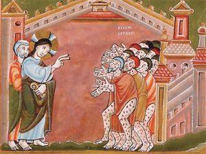 Disumanizzarsi, questa è la lebbra che colpisce anche oggi. Ecco perché stanno a distanza, stavolta però i dieci sono, prima di tutto, “visti”. C’è uno sguardo, quello di Gesù, che accoglie come carezza. Sguardo che non fugge, che non si spaventa, che non giudica. Sguardo che è principio di umanità. Noi diventiamo uomini se siamo, prima di tutto, guardati con occhi buoni. La culla del nostro essere uomini è in una rete di sguardi che ci hanno avvolto dal momento del parto a quello delle varie rinascite che hanno accompagnato la nostra vita. Non essere guardati da nessuno è la nostra lebbra. Che i nostri occhi sappiano vedere da lontano. Come gli occhi di Gesù. Sappiano colmare le distanze, sappiano comprendere, cioè avvolgere di tenerezza il grido di dolore dell’umanità ferita. Non si avvicinano nemmeno a Gesù i dieci lebbrosi, basta lo sguardo. Uno sguardo e una promessa. Andate dai sacerdoti. Si andava dai sacerdoti per essere riammessi nella società, solo loro potevano certificare l’avvenuta guarigione. Una guarigione che l’evangelista non annota nemmeno. Forse perché vera guarigione sono gli occhi di Gesù. Il suo sguardo. E il loro cammino. I dieci camminano, e mentre camminano la lebbra scompare. E a scomparire sono anche nove di questi lebbrosi. Scomparsi, come riassorbiti dal mondo. Passati da anonimato ad altro anonimato: il vangelo non ne parla più. La storia per loro ricomincia senza particolari differenze. Non cammineranno più a gruppi di dieci, non abiteranno le periferie, ma continueranno a stare nel mondo senza nome e senza storia.