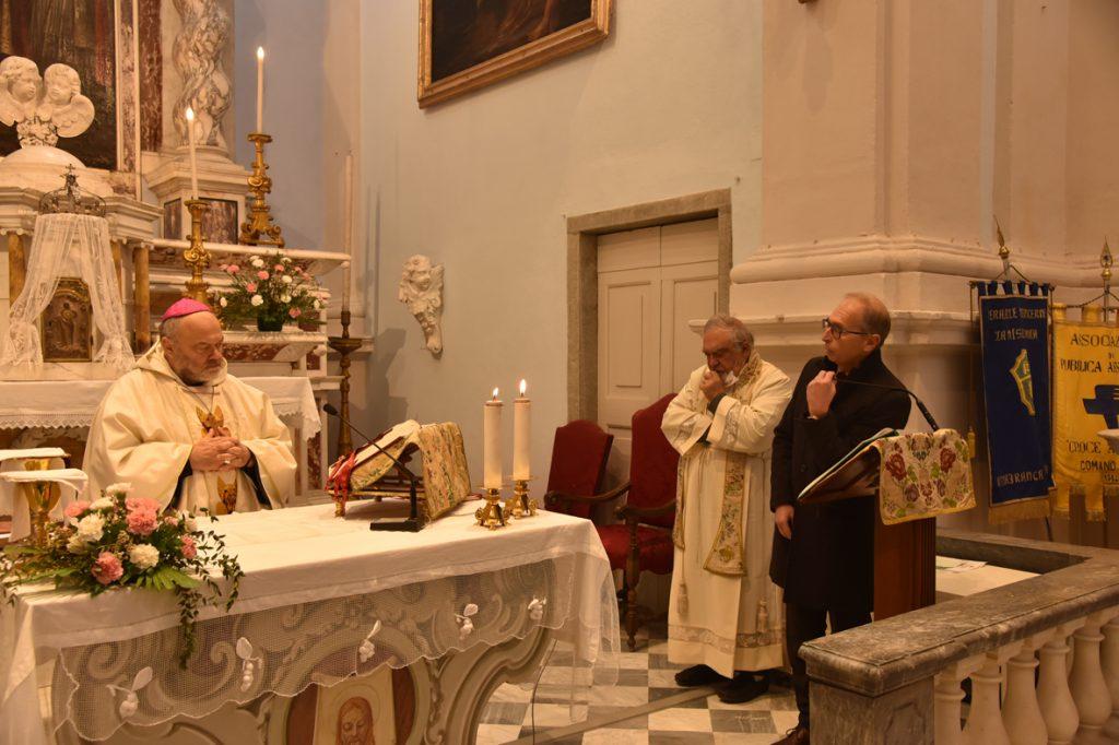 “La vostra patrona, ha detto il vescovo fra’ Mario ai confratelli della Misericordia presenti alla celebrazione, indica la via di Cristo. Maria è presente, ci incoraggia, ci sostiene, conosce bene le nostre difficoltà perché appartiene al genere umano, è nostra Madre e noi vogliamo prenderla ancora con noi”. “Oggi è una giornata di festa, ha sottolineato il priore Paolo Angella nel suo intervento, per la nostra associazione, che nei secoli è sempre riuscita a portare avanti con genuinità e sincerità il vero spirito di Misericordia, così come anche noi, oggi, vogliamo continuare a fare”. Tra queste due riflessioni è racchiuso il significato profondo della festa che la Misericordia di Pontremoli ha dedicato, domenica scorsa, alla Madonna di S. Luca, patrona del sodalizio. Una giornata arricchita dalla presenza del vescovo diocesano, fra’ Mario Vaccari, e che ha preso il via con la benedizione che il presule ha impartito per l’inaugurazione di un nuovo mezzo che sarà utilizzato per il trasporto di pazienti che presentano problemi di mobilità. Quindi la S. Messa, concelebrata dal correttore spirituale don Pietro Pratolongo. Nel corso della celebrazione, la cerimonia della vestizione di tre confratelli con il camice nero, segno distintivo del primario servizio prestato dalla Misericordia di accompagnamento dei defunti nei funerali. Nell’omelia, il vescovo ha evidenziato i tre motivi che caratterizzavano la giornata: “la regalità di Gesù, oggi confermata dal titolo di Cristo re; la festa della Madonna di San Luca, patrona della Misericordia; la cerimonia della vestizione di tre confratelli”. “Con il tipo particolare di servizio che svolgete, ha continuato, voi siete vicini a chi soffre e ha bisogno di cure e quindi particolarmente vicini al modo di regnare di Gesù”. Accogliere Gesù nella nostra vita significa rinunciare al modo di comportarsi dei governanti di questo mondo, che vogliono dominare sugli altri, salvando se stessi. “Cristo ci insegna la via del servizio umile, dell’ascolto dei bisogni degli altri, dello scendere all’ultimo posto, del lavare i piedi… Il regno di Dio è già in mezzo a noi e dobbiamo portarlo a compimento secondo quello che il Signore ci dà la grazia di fare”.