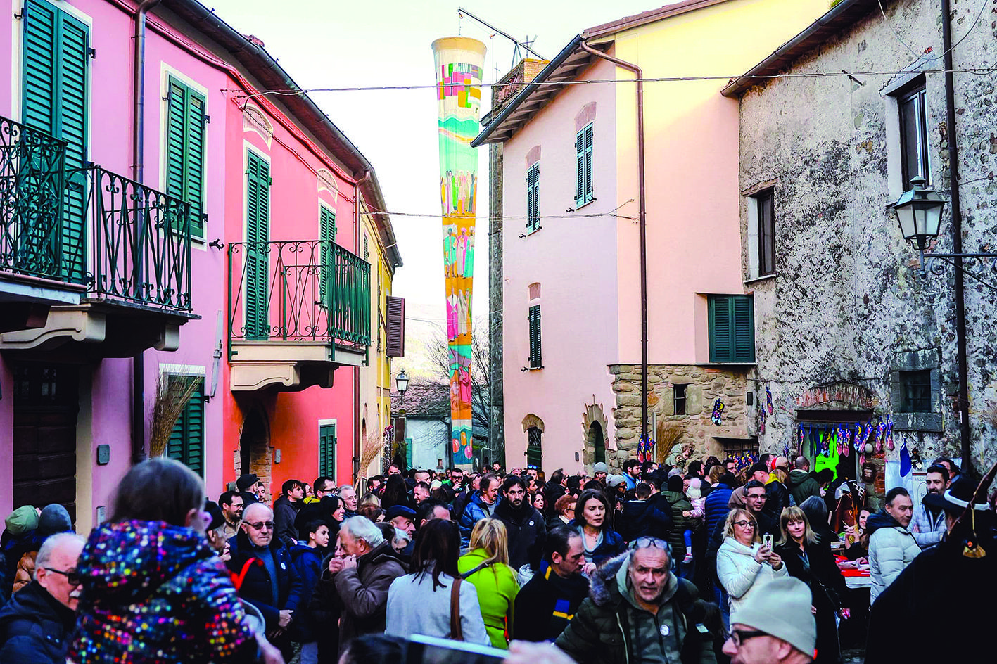Dalla prima edizione del 1982, ben presto i promotori si resero conto che quel progetto poteva proiettare Quercia al centro del mondo, perché non esisteva in nessun angolo del globo una calza della Befana lunga 25 metri! I tempi di quel record iscritto nel Guinness dei Primati (il riconoscimento risale al 1989) sembrano lontani, eppure il grande successo di questa edizione del ritorno, ben organizzata dalla Pro Loco “La Quercia d’Oro”, testimonia quanto sia ancora gradita l’esposizione di quella calza colorata che scende dalla torre campanaria. Quercia è tornata infatti a popolarsi di grandi e piccini, attirati dal ricco programma delle attrazioni, con trampolieri, bolle di sapone giganti, falconieri, suonatori di piva… e l’immancabile casa della Befana. Le facce stupite di tanti bambini, quelle un po’ nostalgiche dei grandi che ricordavano le prime edizioni di trent’anni fa, ma alla fine tanta allegria per tutti. Al termine restavano le emozioni dei partecipanti che gli assenti possono vivere, almeno in parte, con le tante foto a disposizione su facebook; su tutte quelle di Lunigiana World che ha voluto arricchire la sua seguitissima pagina con un video girato con il drone che ci permette di osservare da una prospettiva quella calza che, anno dopo anno, non si stanca di scendere dal campanile di Quercia.