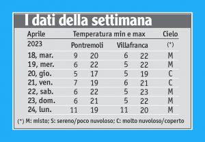 Rispetto alla settimana scorsa, nel panorama meteo di aprile non è cambiato granché: un leggero rialzo delle temperature, un paio di eventi piovosi di breve durata – quando sarebbe stato necessario che fossero ben più generosi – e un cielo in prevalenza misto, qualche volta coperto e mai sereno. Arrivati all’ultimo scorcio del mese, le uniche tre giornate di perfetto bel tempo rimangono quelle di lunedì 3, martedì 4 e mercoledì 5 aprile: in seguito le condizioni atmosferiche sono sempre state improntate ad una blanda variabilità. Da qui a fine mese, però, il sole avrà modo di rimediare.