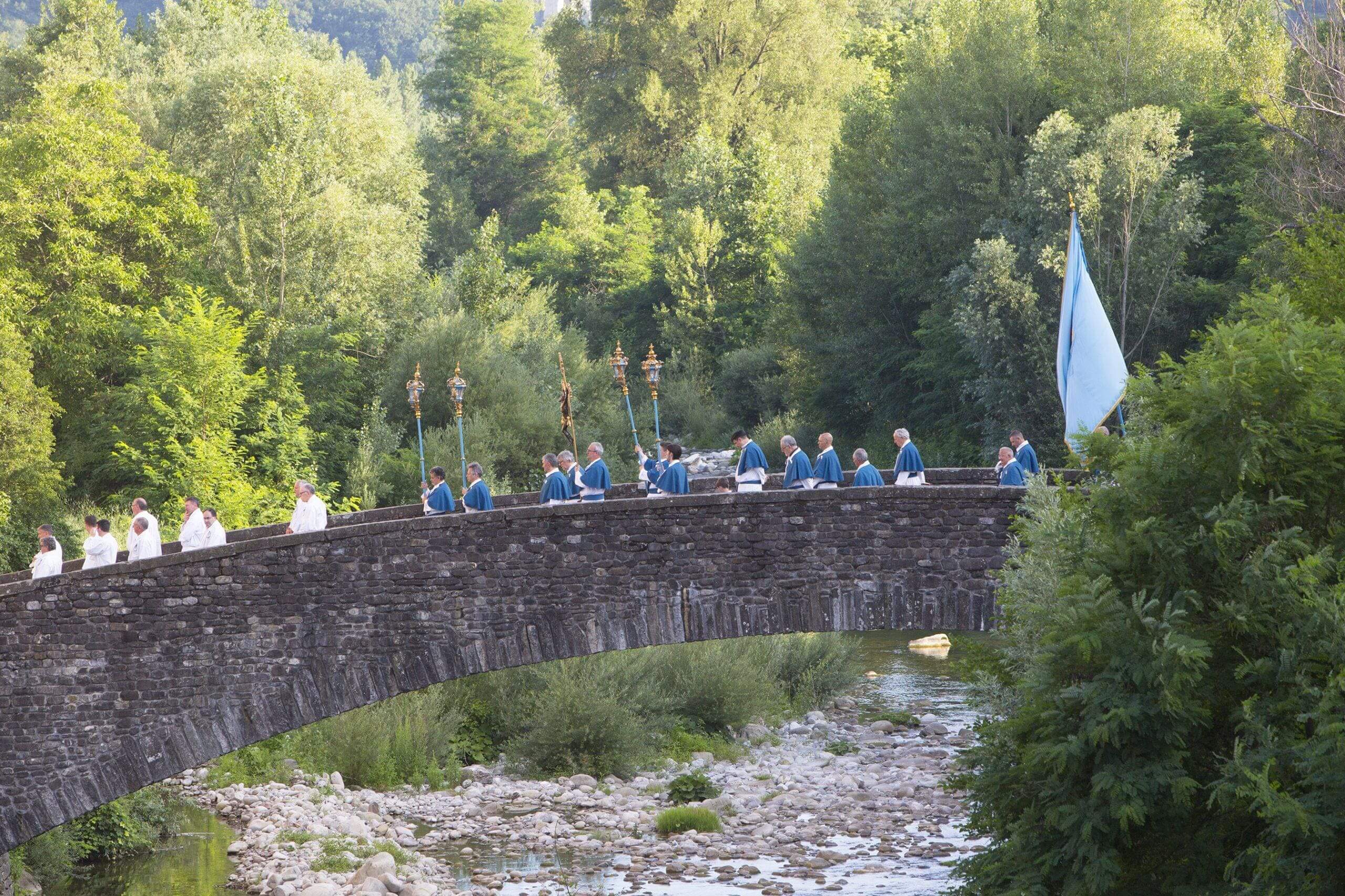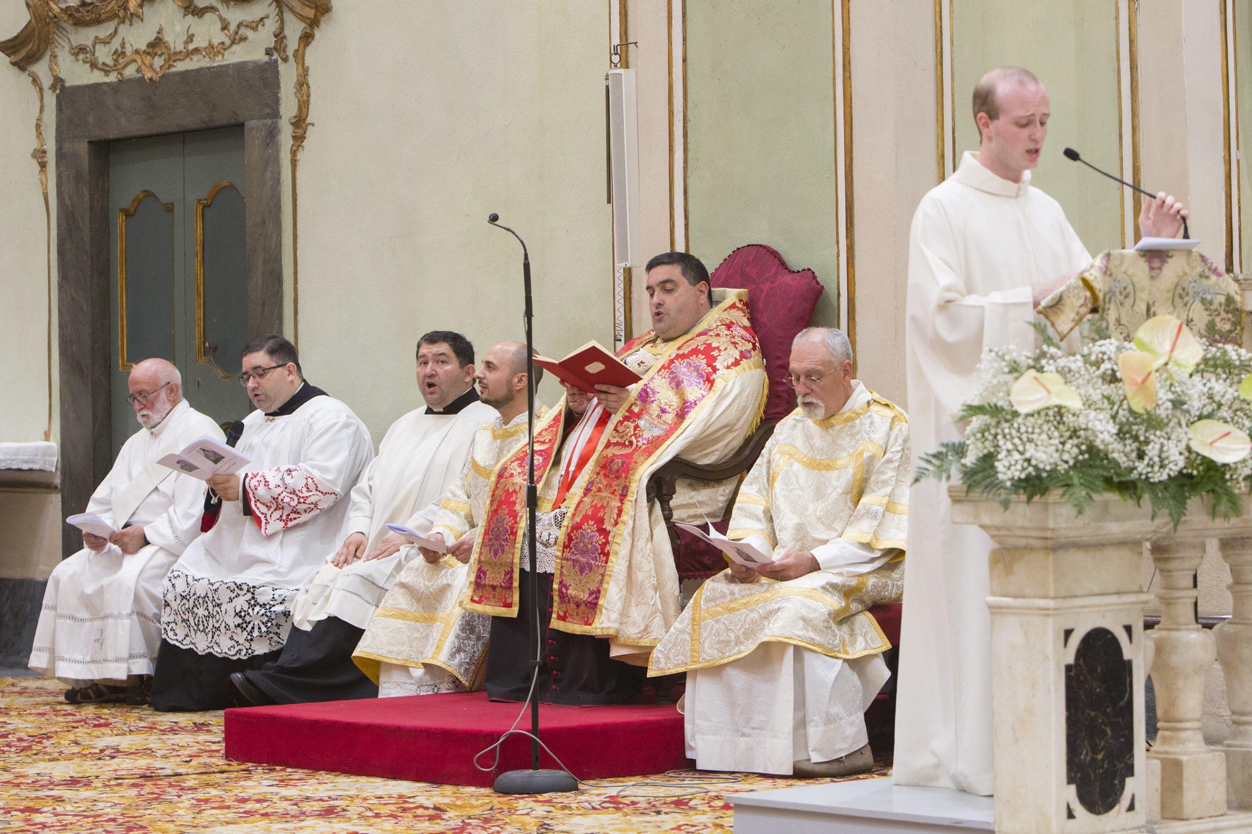 Il pontificale per la festa della Madonna del Popolo è stato celebrato da mons. Guido Marini, vescovo di Tortona, affiancato dal vescovo diocesano fra’ Mario Vaccari – che ha indirizzato al confratello, originario di Genova come lui e suo insegnante di Diritto canonico, parole di saluto e di ringraziamento per aver accettato l’invito -, dal vescovo emerito di Volterra, mons. Alberto Silvani, canonici della concattedrale di Pontremoli, sacerdoti e diaconi diocesani. Con ancora nel cuore il ricordo dei festeggiamenti dello scorso anno per la ricorrenza del IV centenario del voto, un buon numero di fedeli ha riempito il duomo, a testimonianza del forte richiamo ancora oggi esercitato dalla volontà di mantenere vivo l’impegno espresso dalla città nel lontano 1622. All’inizio dell’attesa omelia, mons. Marini, in riferimento al voto cittadino, ha ricordato che “nel corso della storia e nella vita di tutti noi ci sono diverse tipologie di peste”; per questo, oggi come sempre, “ci rivolgiamo alla Madonna per presentarle tante necessità – materiali, morali, spirituali – dell’ora presente”.