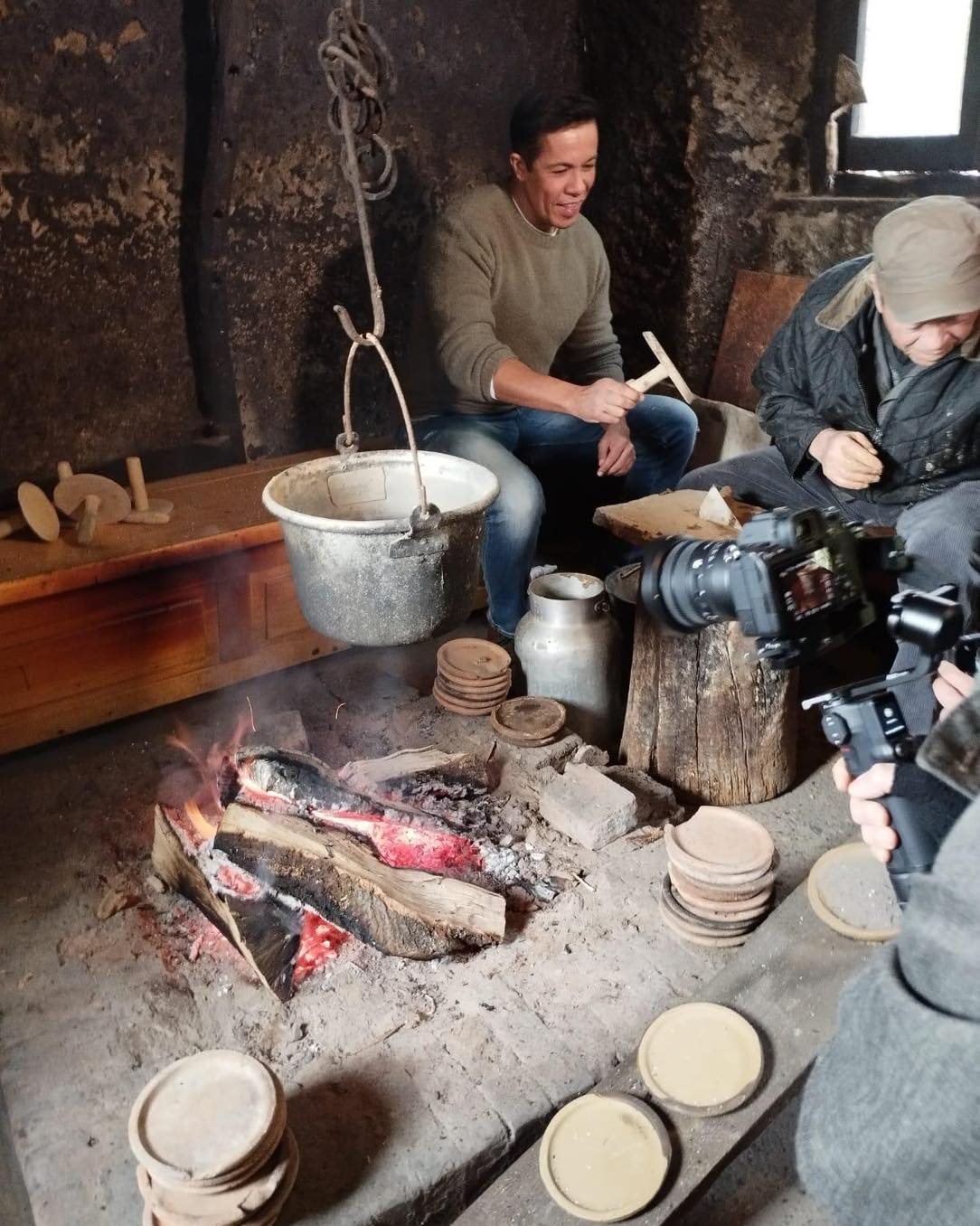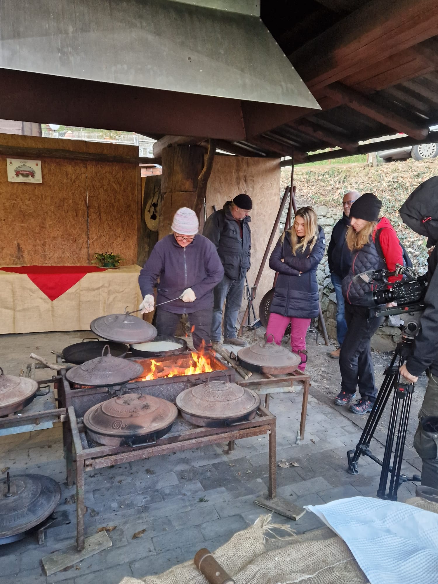 Si è chiusa in un clima decisamente familiare la giornata dell’équipe di Linea Verde dedicata alla Lunigiana. L’ambiente, l’affollato stanzone della Cooperativa la Guinadese, a ridosso del grande focolare dove le fascine di faggio frigolavano per riscaldare i testi dove gli uomini del gruppo stavano facendo cuocere le torte preparate dalle donne di casa. Livio Beshir e Margherita Granbassi, agli ordini di un burbero ma cortese regista, pilotavano la cena a base di testaroli, alvata, mortadella nostrale e pattona e ricotta, sotto gli occhi attenti dei cameramen che cercavano di cogliere tutti i particolari di quella strana ma spontanea compagnia.