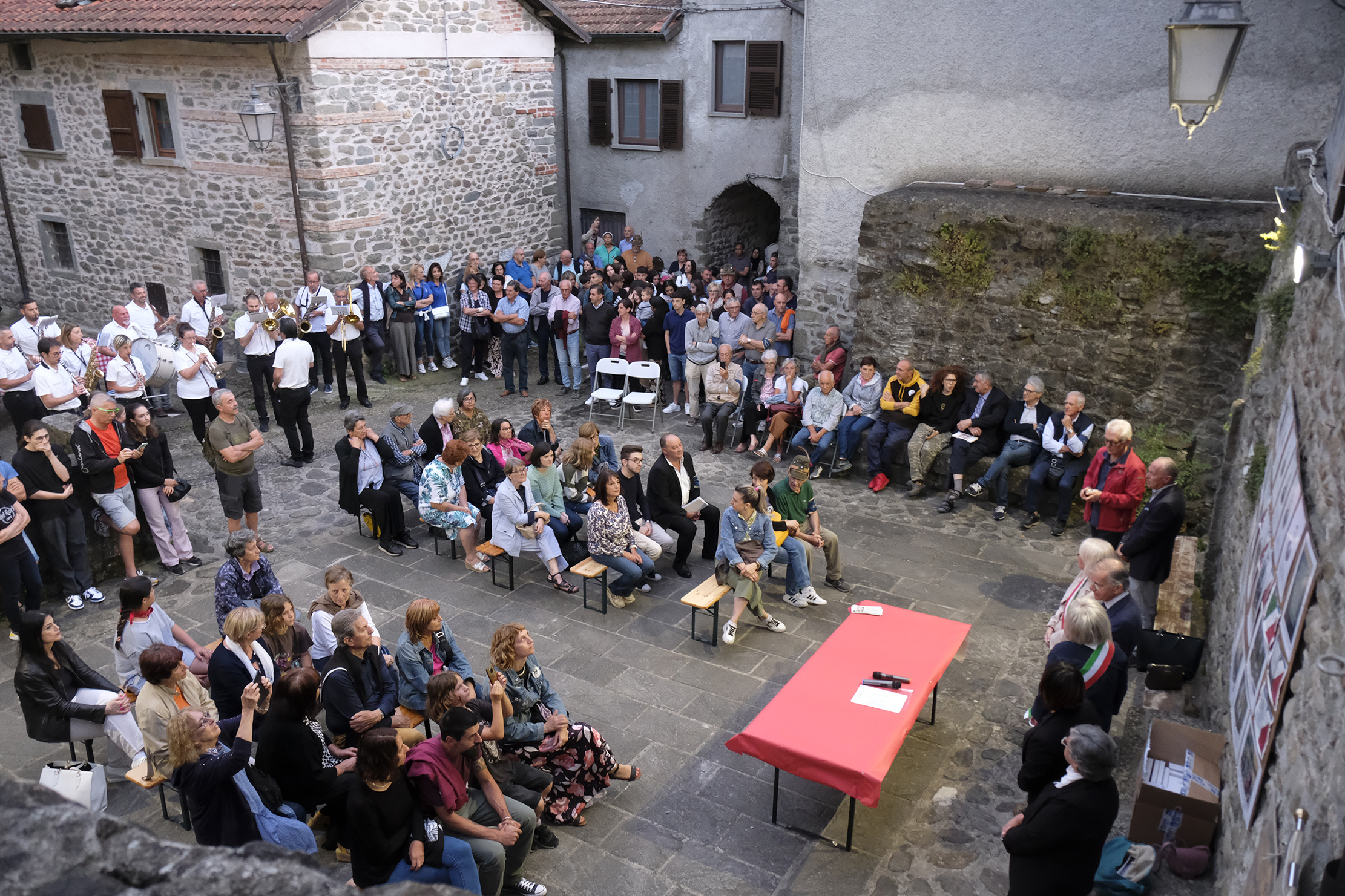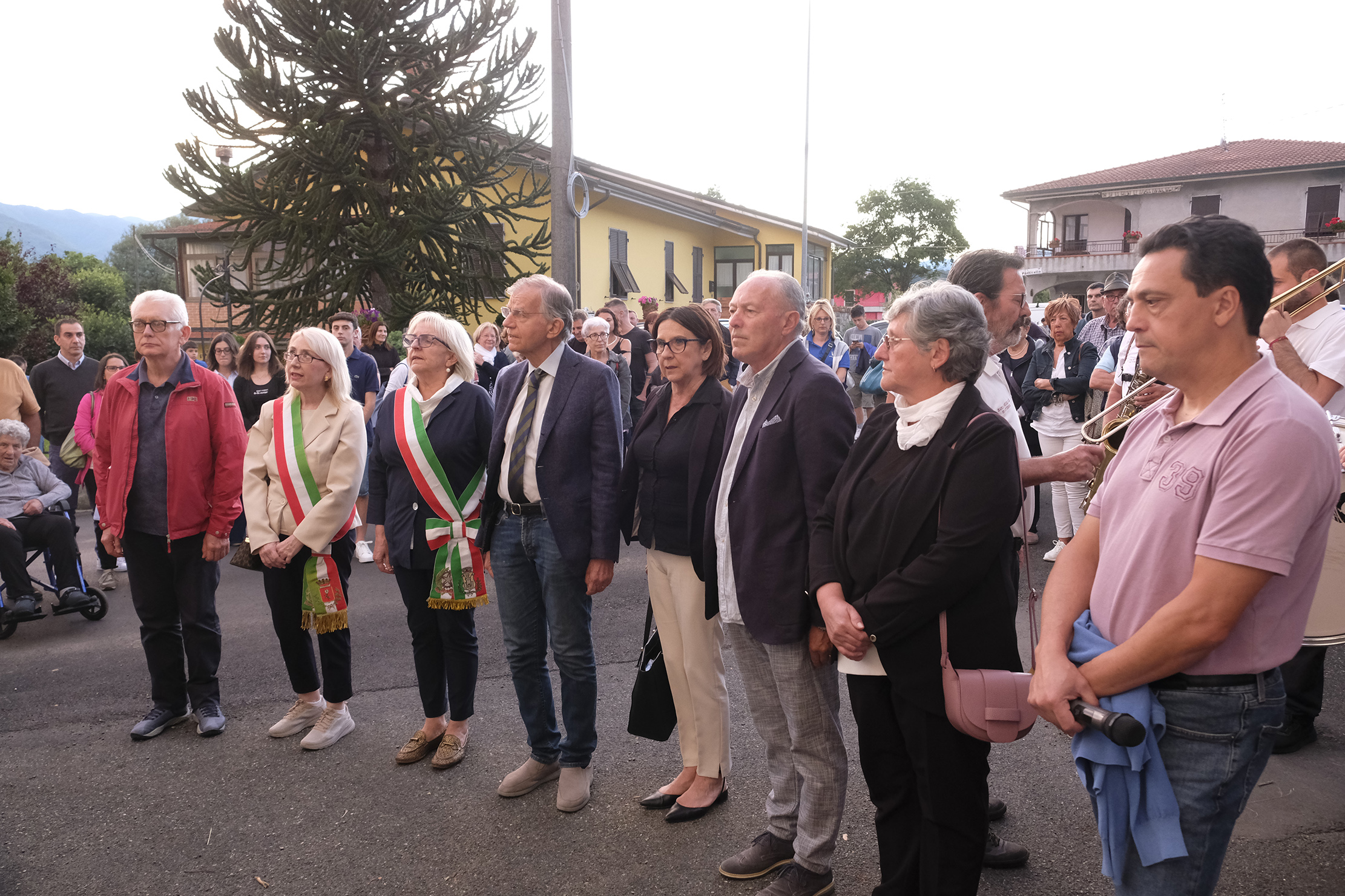 Subito dopo, davanti alla lapide che chiude i loculi dove riposano Leopoldo Mori, Francesco ed Enrico Angella, Vincenzo e Giovanni Sardella, è iniziata la cerimonia civile che ha visto una numerosa partecipazione. Organizzata dalla Venerabile Misericordia della SS. Annunziata con la collaborazione della Confraternita della Pieve di Saliceto e della sezione dell’Anpi di Pontremoli, alla presenza delle autorità civili e militari, è stata resa ancora più emozionante dalla presenza di alcuni parenti dei caduti e impreziosita dalla partecipazione della Musica Cittadina che ha eseguito l’Inno d’Italia, il Silenzio e una struggente versione di “Signore delle Cime” in memoria dei cinque fucilati dai nazifascisti. Dopo i saluti del sindaco di Pontremoli, Jacopo Ferri, e della sindaca di Filattiera, Annalisa Folloni, si sono succeduti gli interventi di Roberto Bertolini, priore della Misericordia dell’Annunziata, e di Paolo Bissoli, presidente dell’Istituto Storico della Resistenza. Il ricordo di quelle cinque vittime innocenti, strappate alle loro famiglie e ai loro affetti, il clima di terrore di quei mesi lontani, la deportazione di decine e decine di uomini nei campi di lavoro e di concentramento nazisti sono stati la premessa per un invito alla pace, unica via possibile, oggi che la guerra è tornata terribile presenza anche in Europa e nel Mediterraneo.