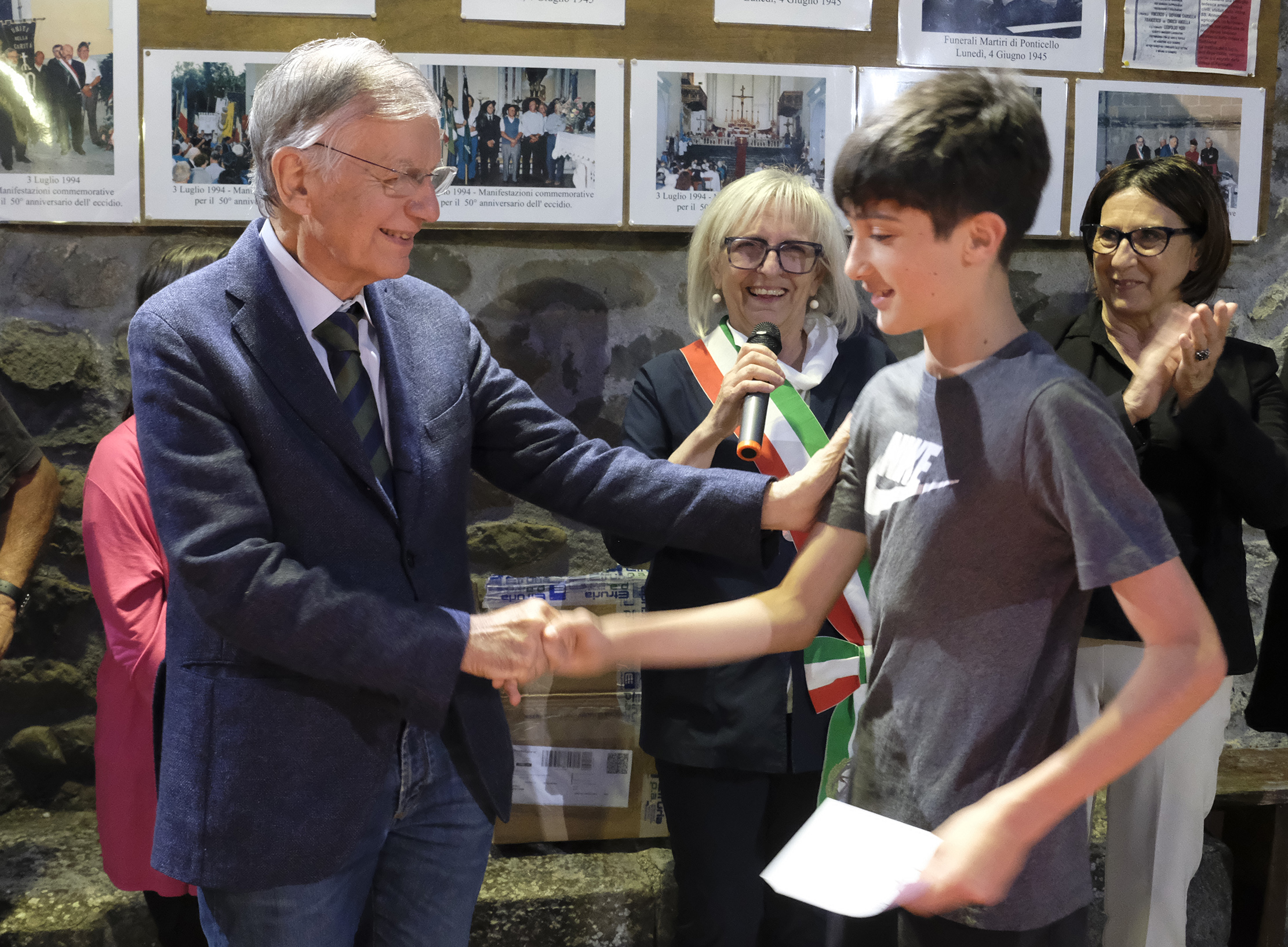In questo senso, una volta in piazza, gli interventi del sindaco Annalisa Folloni, del presidente dell’Istituto Storico della Resistenza Apuana Paolo Bissoli e dell’insegnante Michela Paita, oltre a contestualizzare la serata, hanno ben illustrato il progetto della borsa di studio “I giorni della memoria”, che ha visto come partecipanti i ragazzi dell’ultimo anno della locale scuola media. È seguita la premiazione degli alunni vincitori: al primo posto si è classificato Gabriele Isacco, al secondo è arrivata Zainab El Kharroubi, terzi a pari merito sono invece risultati gli elaborati di Azzurra Quartieri e di Sofia Tonarelli. Il progetto della borsa di studio, giunto ormai alla sua 19.ma edizione, mira non solo a rendere consapevoli i ragazzi su quello che avvenne ottant’anni fa nella località di Ponticello, ma anche a far sviluppare in loro un senso critico sulle vicende passate, e a renderli consapevoli del valore odierno della memoria. E da ognuno dei loro interventi si è potuto positivamente constatare quanto questi obiettivi siano stati realizzati: tutti i ragazzi hanno infatti affermato di essersi approcciati alla vicenda dell’eccidio con grande interesse, dopo aver sottolineato come la conoscenza della storia in ogni sua sfaccettatura, dalla più risaputa alla meno nota, sia importante per acquisire una consapevolezza diversa del passato e di riflesso anche del presente. La cerimonia è stata inoltre arricchita dalla presenza dell’onorevole Valdo Spini, che nella sua orazione con efficaci parole ha contestualizzato la situazione politica italiana a seguito dell’8 settembre 1943: “La nostra Costituzione è bagnata dal sangue dei martiri che si sono battuti per il nostro paese, ed è nata da questi piccoli luoghi, come anche Ponticello, dove però si è fatta la grande storia, dove gli italiani hanno lottato per la loro Nazione, per il loro destino e i loro diritti. Se noi dimenticassimo questi martiri, avrebbero vinto i loro carnefici. Se noi li ricordiamo, vince la vita, ed è quello che dobbiamo fare”.