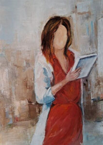 Franca Battilocchi è una signora di Gravagna naturalizzata milanese che continua a riempire il tempo dipingendo in un continuo ricercare emozioni e nuovi soggetti. Nelle Stanze della Rosa ha portato immagini di donne sole o in gruppo, velate da ombre, alcune non hanno i segni del volto, Franca dice che non c’è sotto una filosofia esistenzialista che contrappone vita autentica e vita banale, di un niente sociale, ma che semplicemente ha voluto cogliere “un andar di donne per le vie di Milano”.