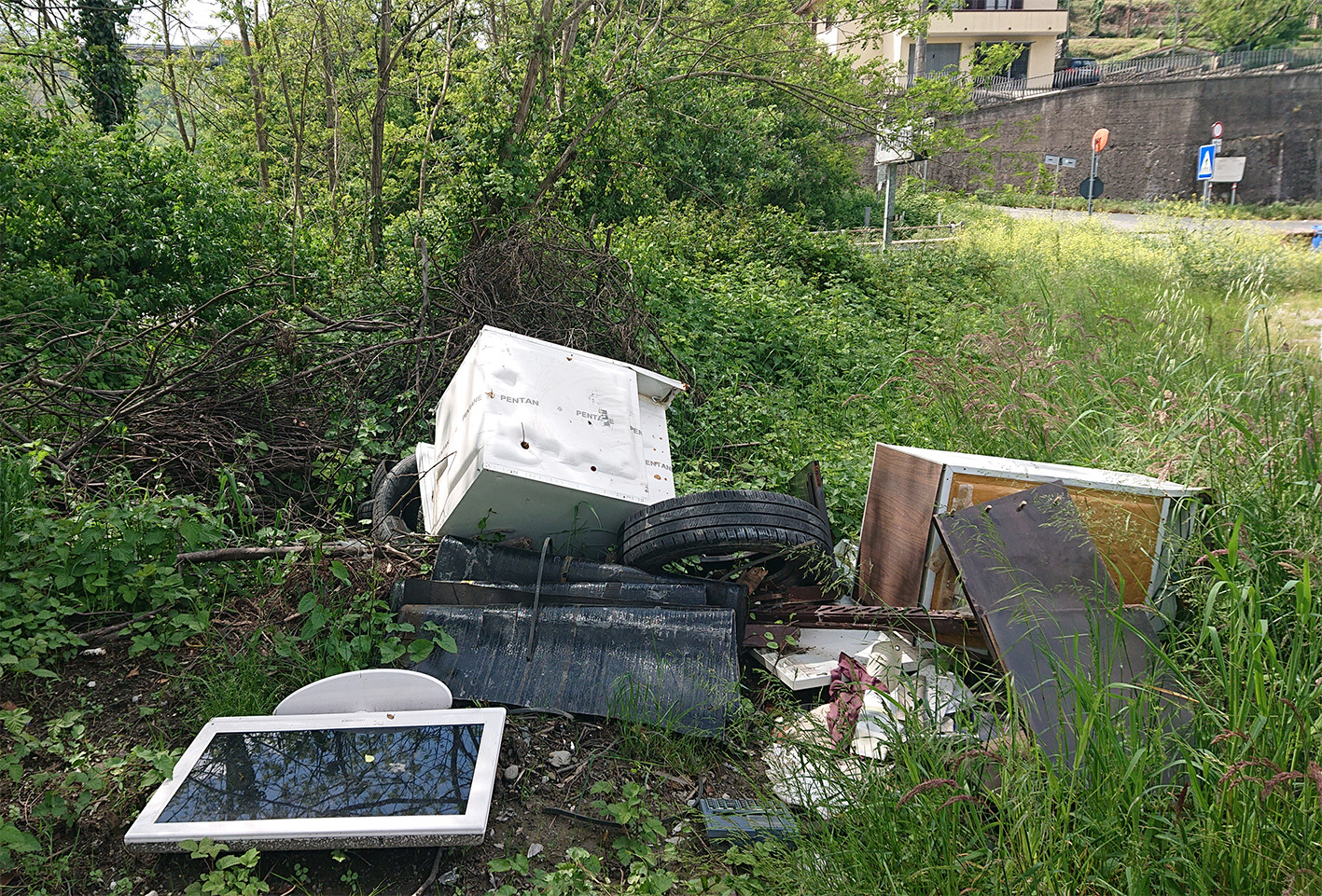 Alcuni esempi di rifiuti abbandonati nel territorio comunale di Pontremoli. Qui siamo all'esterno del cimitero comunale