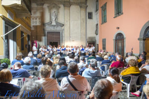 E di questa poliedricità hanno dato ampia prova i coristi durante il concerto, con undici brani divisi in quattro sezioni, proprio a raccontare l’estrema varietà e qualità del repertorio. Si è quindi partiti con canti elegiaci e liturgici (“Padre nostro”, “Preghiera”, “Signore delle Cime”), per attraversare quindi composizione più nostalgiche (“Pontremoli mia”, “La villanella” “Improvviso”), per passare a composizioni popolari (“Dove te vet o Mariettina”, “A mezzanotte in punto”) per poi la grande conclusione con canzoni dialettali pontremolesi (“Cara luma”, “La balerina d’la jera” “Al Campanun”) un finale di concerto che si è svolto all’interno della chiesa di San Geminiano a causa della pioggia che ha incominciato a cadere in maniera abbondante sulla piazzetta.