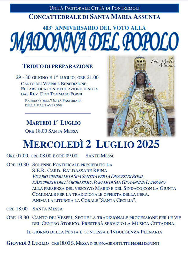 La comunità di Pontremoli si appresta a celebrare la solennità della Madonna del Popolo nel 403° anniversario del voto.