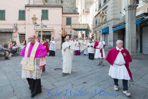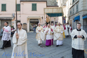 La Benedizione Eucaristica ha concluso solennemente la celebrazione mentre il canto e la preghiera hanno portato a respirare l’emozione di sentirsi un’unica famiglia ed un’unica Chiesa. Processioni eucaristiche si sono svolte tra giovedì e domenica in numerose parrocchie della Diocesi. In particolare il Vescovo Vaccari ha preso parte nella serata di giovedì 19 alle celebrazioni a Massa, con i vespri solenni nella Basilica Cattedrale e la processione per le vie del centro storico della città ducale. Nel vespro di sabato 21 giugno il Vescovo ha partecipato alla celebrazione dell’Unità Pastorale di Carrara centro. Preceduta da un triduo di preparazione, la celebrazione ha visto, dopo la messa in Duomo, la processione per le vie del centro storico fino al sagrato della chiesa di San Francesco. (Fabio Venturini)