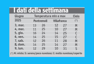 Diverse le masse d’aria che hanno interessato le nostre regioni in questo primo scorcio di estate meteorologica: domenica 1° giugno, resistevano ancora aria asciutta e cielo limpido sperimentati a fine maggio. Poi, da lunedì 2, nuvolosità variabile e ventilazione dal quadrante ovest hanno contenuto il livello termico diurno, mentre le schiarite notturne hanno permesso un buon irraggiamento e minime nei canoni di avvio di stagione estiva.