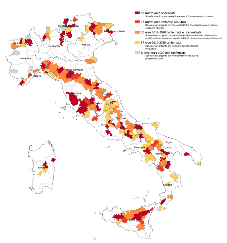 A sancire la scelta è un documento redatto dalla Presidenza del Consiglio dei Ministri, il Piano Strategico Nazionale delle Aree Interne (PSNAI), pubblicato a fine giugno dal Dipartimento per le politiche di coesione.