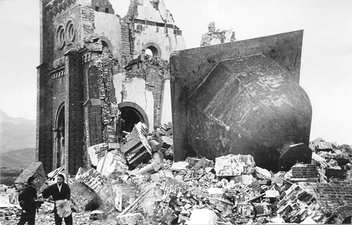 Una cattedrale cattolica a Nagasaki, distrutta dall’esplosione della bomba atomica (da Wikipedia)