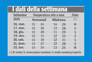 Il fondovalle ha sperimentato punte pomeridiane prossime o di poco oltre i 30°C nei tre giorni dal 18 al 20; venerdì 19, evidentemente , un locale effetto favonico e l’indecisione del regime di brezza hanno reso possibile un singolare picco di breve durata fino a ben 33°C nel bacino di Villafranca-Filattiera: presso la stazione di Villafranca-Ghiaione, infatti, il termometro è salito fino a 33,4°C alle ore 16:55, un dato notevole a soli tre giorni dall’equinozio d’autunno.