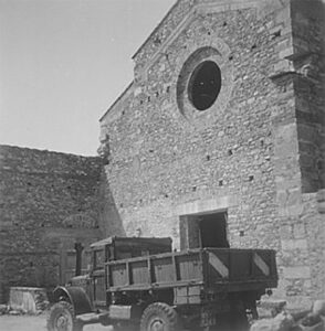 A Villafranca il bombardamento del luglio 1944, diretto sulla stazione ferroviaria e gli stabilimenti industriali vicini, colpì sia la chiesa che il convento. Dopo l’esplosione delle bombe sganciate dagli aerei degli Alleati, gli edifici si presentavano semidistrutti, all’apparenza irrecuperabili: il chiostro sventrato si apriva alla vista dalla strada, la chiesa in gran parte crollata con gravi danni anche alle opere d’arte conservate.