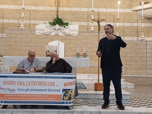 Fabrizio Carletti del centro studi “Missione Emmaus” e collaboratore dell’Ufficio Catechistico Nazionale, ha riepilogato e commentato quanto vissuto dai partecipanti ed ha sottolineato che “iniziare alla vita cristiana è prima di tutto farne esperienza personale… Trasmettere la fede è trasmettere la vita, la mia vita vissuta e provata, sperimentata e sperata dentro questa relazione vivificante di senso che avviene con Gesù. Il kerigma allora si traduce in un incontro diretto con Lui mediante la Parola, le storie, la comunità, dei gesti, dei simboli, dei riti, delle emozioni, che siamo chiamati a sperimentare per rinarrare”.