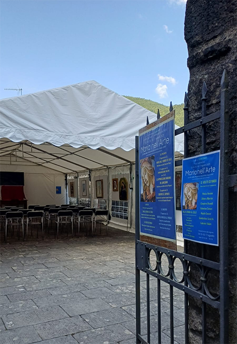 Nella tendostruttura del sagrato della chiesa era allestita l’altra mostra dal titolo “Il volto di Maria” costituita da una rassegna di opere di artisti contemporanei quali Valentino Ciusani, Debora Albertini, Gianpiero Brunelli, Monica Anselmi, Angelo Savarè, Gianbattista Scacchi e Gabriele Vailati.