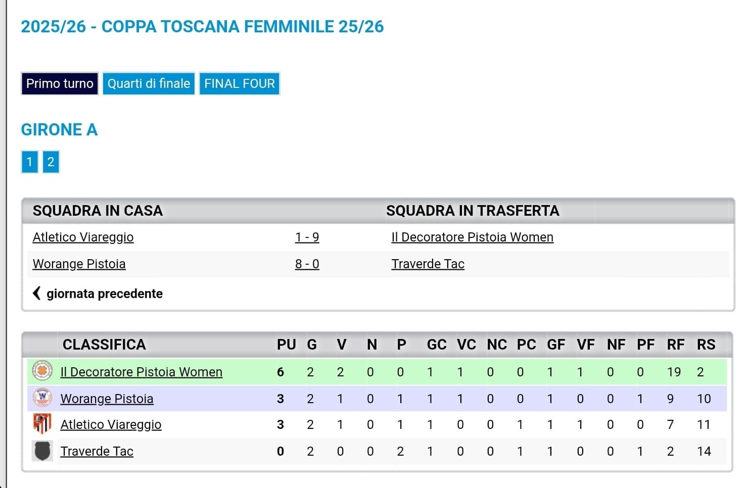 Risultati e classifica Coppa Toscana femminile calcio a 5