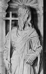 Particolare della scultura raffigurante Sant’Andrea, opera di Andrea di Francesco Guardi (XV sec.) nel Duomo di Carrara