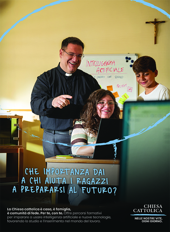 La campagna, dal claim incisivo “Chiesa cattolica. Nelle nostre vite, ogni giorno” intende mostrare i mille volti della “Chiesa in uscita”, una comunità che si fa prossima ai più fragili e accompagna famiglie, giovani e anziani con azioni concrete. Dai percorsi formativi rivolti ai ragazzi, per imparare a usare intelligenza artificiale e nuove tecnologie, alle attività ricreative per gli anziani che spesso devono affrontare una vita in solitudine, dal sostegno alle persone lasciate sole, restituendo loro dignità e speranza, ai cammini di fede per aiutare ogni individuo a incontrare Dio nella vita quotidiana.