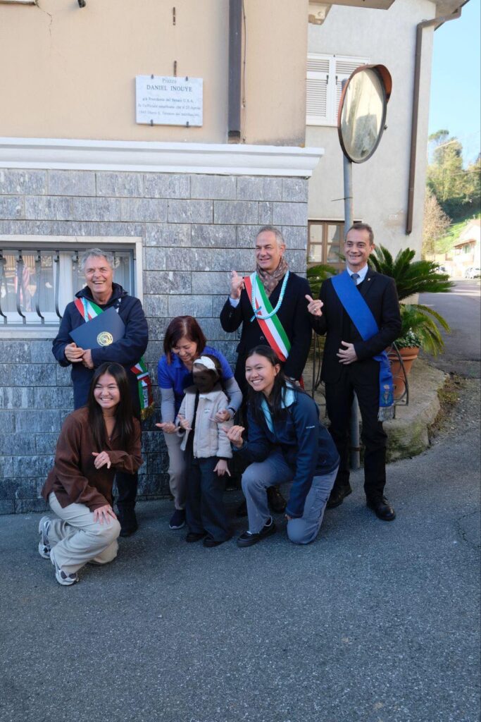 Un numeroso gruppo di discendenti dei soldati nippo-americani era presente alla intitolazione e una di loro, la presidente dell’Associazione Veterani del 100° Reggimento “Go for broke ( Vai e distruggi)”, Kathleen Hayashi, ha letto la Proclamation del Sindaco di Honolulu, Rick Blangiardi, che istituisce il 9 novembre 2025 come la “Daniel Inouye Piazza Day”. Momenti di grande commozione sono stati quelli della lettura dei nomi dei 6 giovani Nisei caduti: Tadao Hayashi, Stanley Hayami, Yeiichi Hyama, Gordon Takasaki, Yukio Tanimoto, Joe Hayashi, e della presentazione di due anziani testimoni dell’eccidio dell’agosto del 1944, Umberto Vangeli ed Alfredo Gerini, entrambi del 1934.