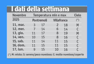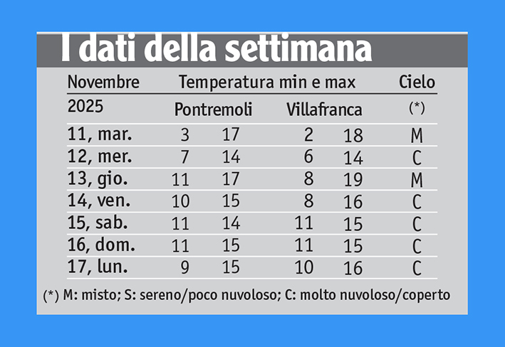 La settimana, però, è trascorsa con precipitazioni pressoché assenti fino a tutto venerdì14, eccetto mercoledì 12, giorno in cui è scesa una lieve pioviggine ed è piovuto un poco nella parte orientale della Lunigiana.