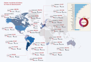 I nostri connazionali all’estero iscritti all’Aire, l’Anagrafe Italiani Residenti all’Estero, sono più di 6 milioni (6.412.752), più del 10% della popolazione italiana. Una cifra nettamente superiore agli abitanti di molte regioni italiane: ecco perché si potrebbe legittimamente parlare di una ventunesima regione, “l’Italia fuori dall’Italia”.
