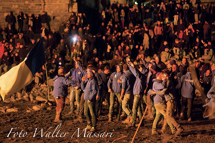 Il letto del fiume riflette la luce delle fiamme, i fuochisti si abbracciano, urlano, esultano. Tutti insieme si avviano, stanchi ma emozionati, verso “la baracca” per continuare i festeggiamenti.