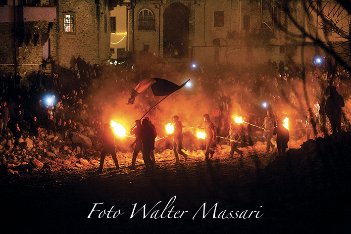 Via! All’unisono le torce penetrano negli “ulsi” e in pochi secondi le fiamme aggrediscono i rami secchi che alimentano il fuoco e si alzano velocemente, avvolgendo tutta la pira. Migliaia di scintille si alzano verso il cielo buio.