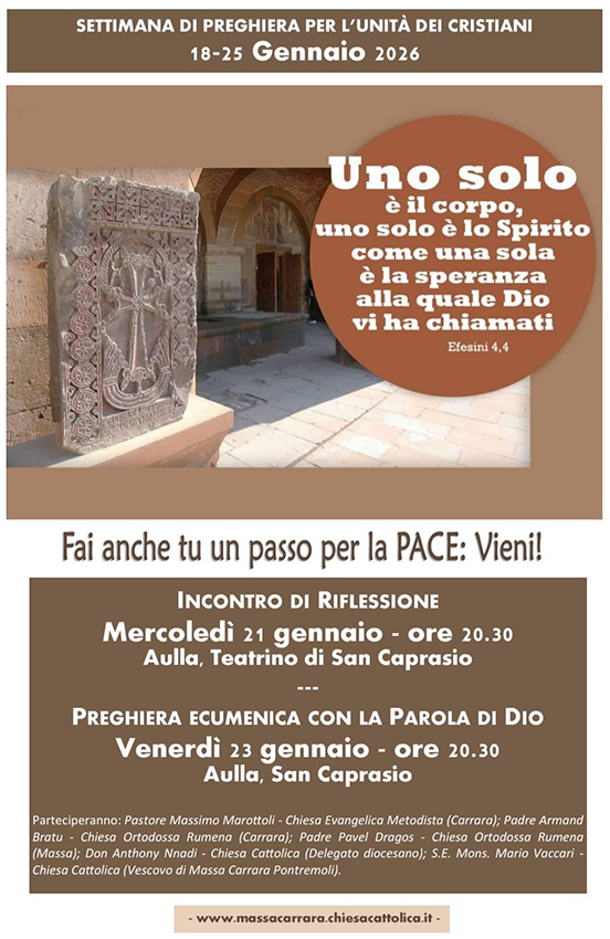 Dal 18 al 25 gennaio si è svolta la Settimana di preghiera per l’unità dei cristiani. Il tema scelto per il 2026, “Uno solo è il corpo, uno solo è lo Spirito, come una sola è la speranza alla quale Dio vi ha chiamati” (Ef 4,4), si ispira alla tradizione delle Chiese armene, segnate da una storia di fede e persecuzione.