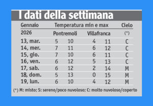 Il cuore di gennaio si è consumato in modo “indegno” della sua qualifica di mese invernale. Le giornate si sono trascinate dapprima cupe, piovigginose e nebbiose, con calma piatta (salvo qualche refolo di ‘marino’), poi è entrato il vento da Nord dal pomeriggio del 16 – ma definirlo tramontana sarebbe un’offesa alla tramontana di nobile e gelida schiatta – e si sono realizzate gradualmente parziali schiarite.