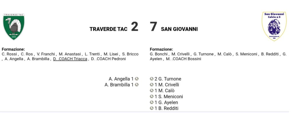 Il Traverde TAC vira alla boa del ritorno con una sconfitta contro la giovane e forte compagine del San Giovanni, ma sembra echeggiare una musica nuova fra le mura amiche del Pala Panigaccio di Podenzana: non solo per il risultato meno rotondo rispetto all’andata e per i due gol già segnati, in crescita rispetto ad una media inferiore ad una rete a partita del girone appena concluso.