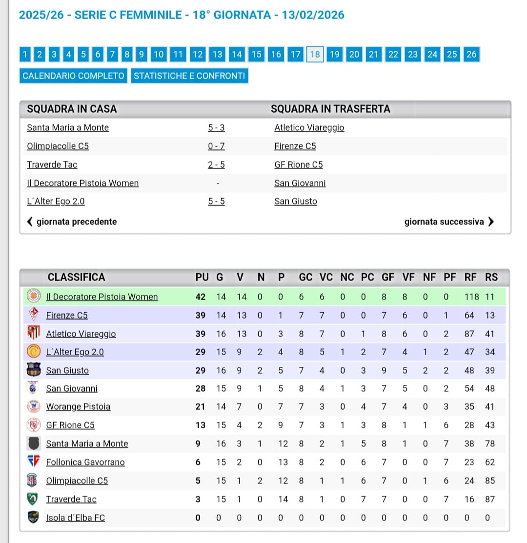 Prossima giornata: 20 Febbraio, h22, in trasferta contro Firenze C5 seconda in classifica.