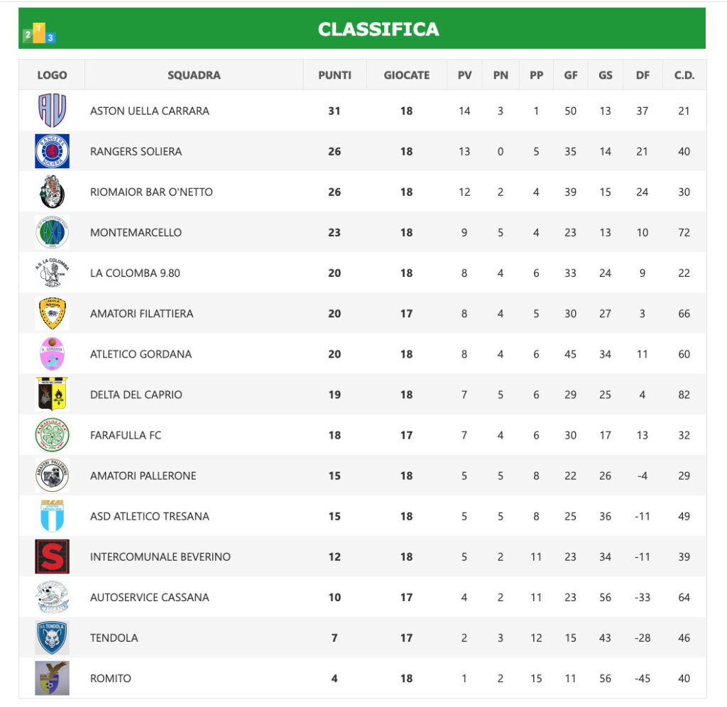 Per fortuna arrivano i risultati positivi dell’Atletico Tresana, 3 a 1 al Romito, degli Amatori Pallerone che vincono sul campo dell’Autoservice Cassana (2 a 3), successo in trasferta anche per Delta Caprio (1 a 4) sull’Intercomunale Beverino. Infine vittoria esterna dell’Atletico Gordana nel derby con il Farafulla FC (1 a 3).