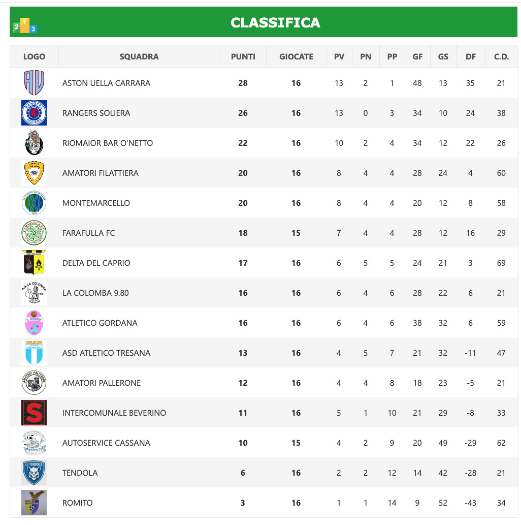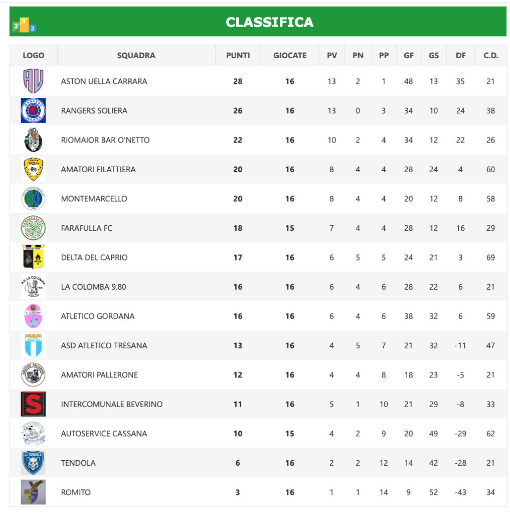 E così in un caso è stato l’Atletico Tresana ad avere la meglio in casa sul Tendola (1 a 0) e con lo stesso risultato la seconda della classe, il Rangers Soliera, ha superato davanti al pubblico amico il Delta Caprio, mantenendo immutato il distacco di due punti dalla capolista Aston uella Carrara a sua volta vincente. Da segnalare poi l’ampia vittoria (4 a 1) dell’Amatori Filattiera contro il Romito, e il successo dell’Atletico Gordana (0 a 1) sul campo dell’Intercomunale Beverino.