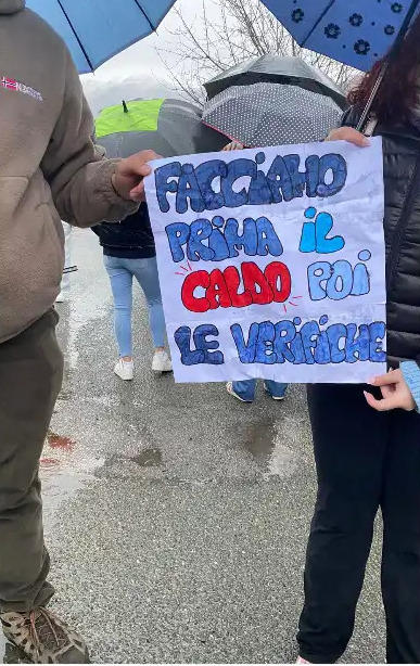 “Prima facciamo il caldo poi la verifica” e ancora “Qui si fa lezione in modalità Polo Nord” sono solo alcuni degli slogan esposti nei cartelli che gli studenti dell’istituto “Belmesseri – Pacinotti” di Bagnone hanno mostrato nella protesta che si è tenuta il 28 gennaio di fronte alla sede della scuola. Uno sciopero di massa, con gli gli studenti delle sette classi dell’Alberghiero e le due classi del Meccanico che hanno protestato per i vari disagi che stanno vivendo.