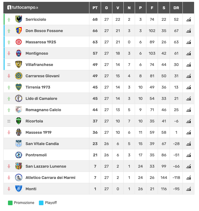 E la prima sfida è andata. Sarà una sofferenza fino alla fine con il Serricciolo, attuale capolista degli Juniores Provinciali, chiamato a quattro sfide di alto livello una dietro l’altra con le inseguitrice pronte ad approfittarne. La prima è andata con il successo sul Montignoso (quarta forza del campionato) con gli aullese che conservano la vetta con due punti di vantaggio sul Don Bosco Fossone e cinque sul Massarosa. Prossimo turno, sulla carta quello più semplice ma comunque insidioso, sul campo della Massese prima della sfida con la Villafranchese e il big match di fine stagione sul campo della seconda della classe, il Don Bosco Fossone.
