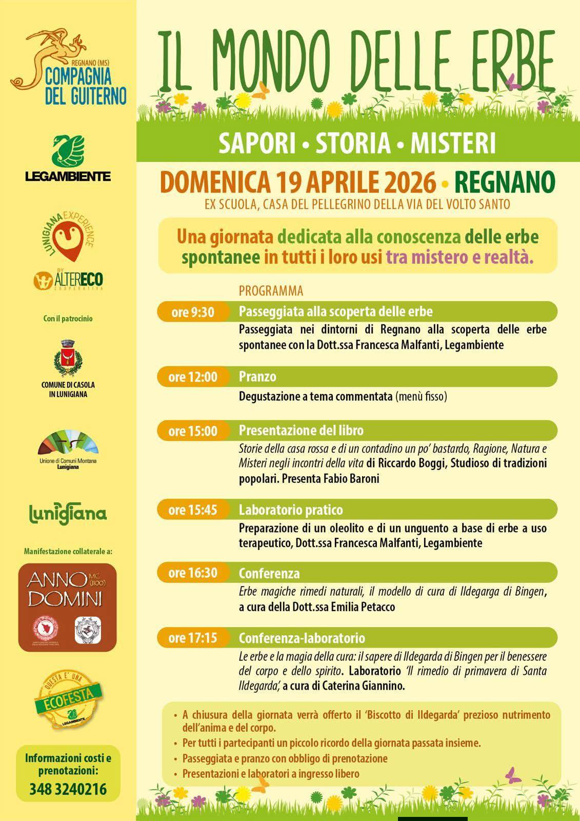 Domenica 19 aprile nella ex scuola, casa del pellegrino della via del Volto Santo a Regnano si terrà l’incontro “Il mondo delle erbe”, una giornata dedicata alla conoscenza delle erbe spontanee in tutti i loro usi tra mistero e realtà.