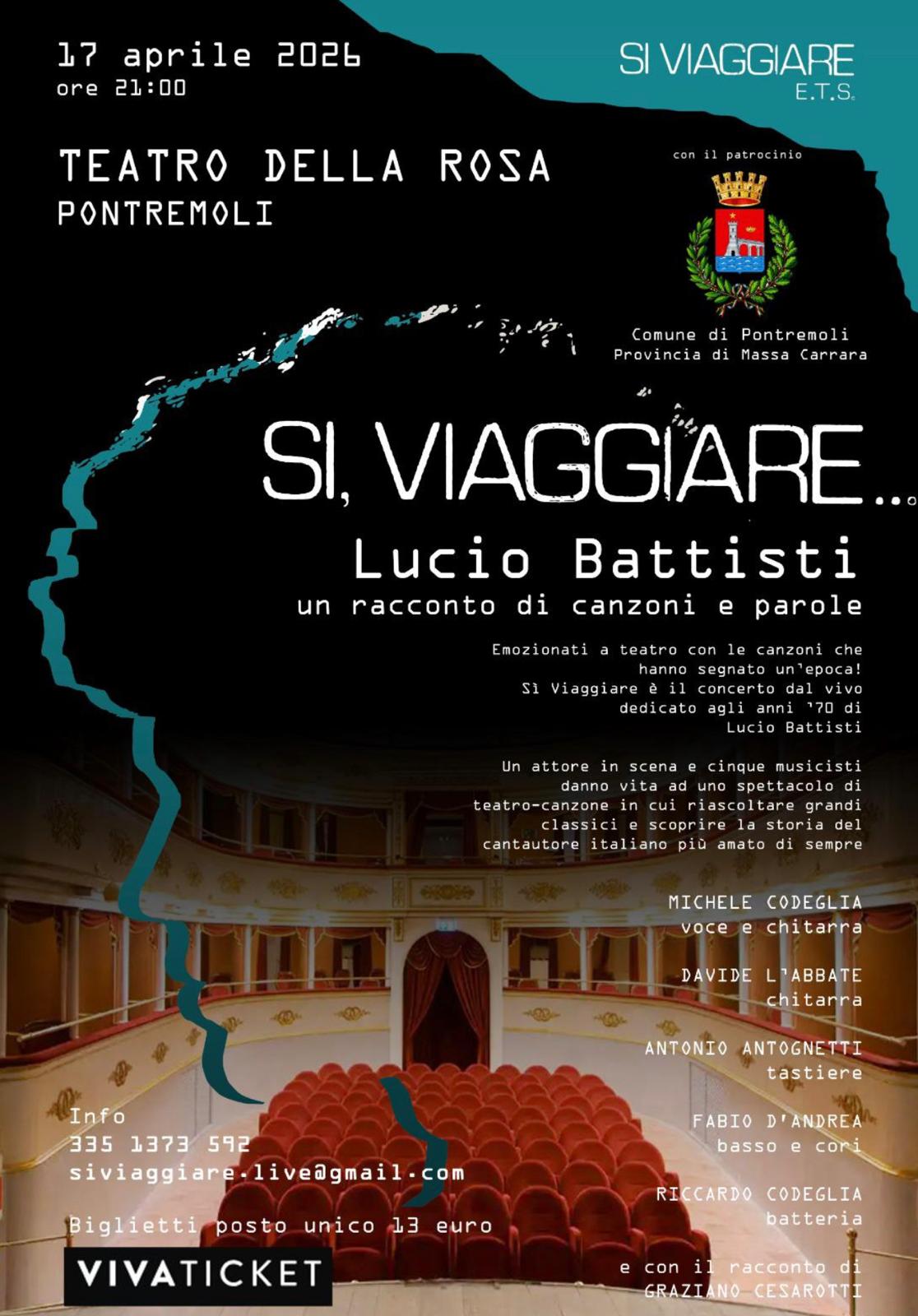 Il Teatro della Rosa di Pontremoli ospiterà, nella serata di venerdì 17 aprile alle ore 21, lo spettacolo “Si, viaggiare… Lucio Battisti – un racconto di canzoni e parole”, promosso dall’Associazione culturale Si Viaggiare ETS. L’iniziativa si inserisce nel panorama delle proposte culturali dedicate alla valorizzazione della musica d’autore italiana, attraverso una formula che integra esecuzione musicale dal vivo e narrazione teatrale.